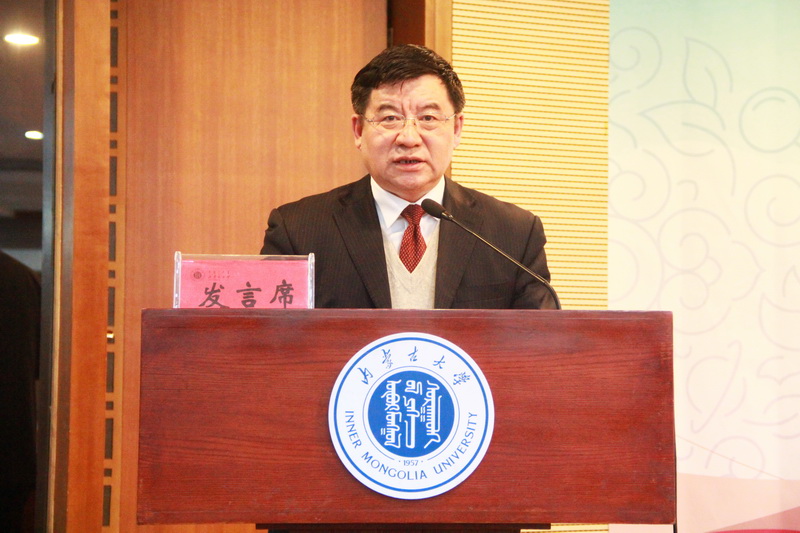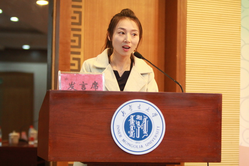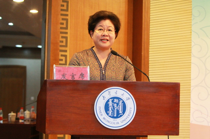 新当选的内蒙古高教学会高校思想政治教育专业委员会第九届理事会会长,内蒙古师范大学党委书记黄雅丽作讲话