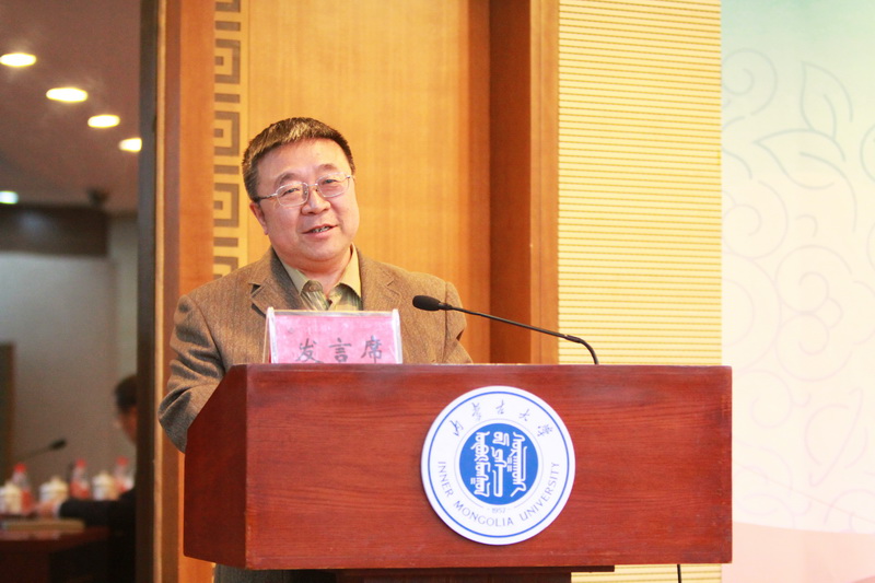 内蒙古高教学会高校思想政治教育专业委员会第八届理事会会长、我校党委书记朱炳文作工作报告