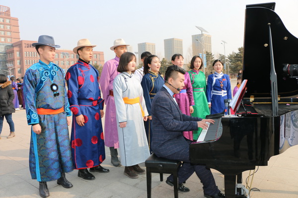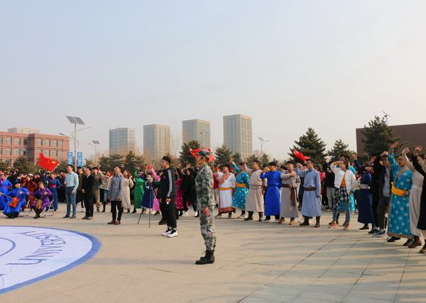 “我和我的祖国,一刻也不能分割,无论我走到哪里,都留下一首赞歌……”,伴随着悠扬的钢琴和马头琴声,深情的《我和我的祖国》歌声在南校区主楼前广场缓缓响起。人群渐渐聚拢,声音从一个两个,汇聚成十个一百个,最终参加升旗仪式的3000余名青年学子都加入到了快闪活动中,汇成了全场合唱。