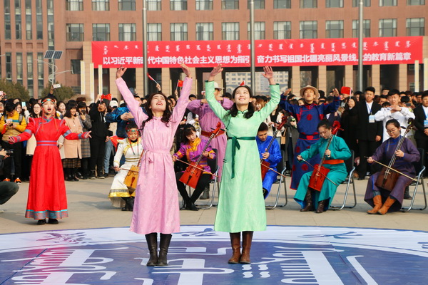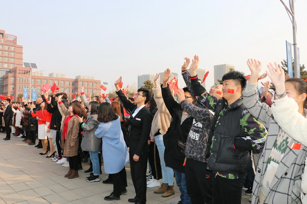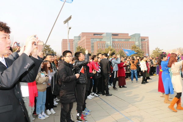 3月4日上午,我校在南校区举行升旗仪式。仪式结束后举行了一场精彩的《我和我的祖国》快闪活动。青年学子们用热情激昂的歌声、优雅动人的演奏、青春洋溢的舞蹈,向祖国深情表白,为2019全国两会献礼。